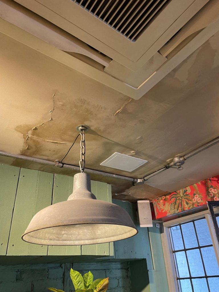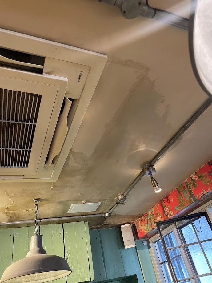 The restaurant faced significant disruption due to water damage, which had left the ceiling visibly discoloured and compromised. Given Bill’s Restaurant’s reputation for providing a stylish and enjoyable dining environment, the damage needed urgent attention to restore the aesthetic appeal of the space.